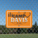 Orange deer hunting camp, personalized family name sign. Brown and white bold text with trees and antlers over editable orange sign color. "Welcome to Camp... Where family gathers and memories are made"