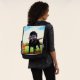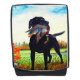 This backpack has a hunting dog painting pictured on it.