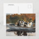 A postcard with the fine art watercolor painting by the American artist Winslow Homer titled, Hunting Dogs in Boat (Waiting for the Start) (1889). An autumn scene of several beagles in a rowboat on the water.