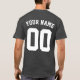 To change the name and number, use the 'Personalize It' box, to the right of the t-shirt photo and type in your name and number. If you want to change the colour and/or text font, click the 'Customize It' box below the image, then click on the thumbnail image of the t-shirt back, and click on the text you want to change and use the tools in the 'Customize It' tool box to the right of the image to change the font, colours, size etc.