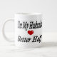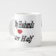 Mug with I'm my husband's better half in 3D black text. Available in several sizes and styles.