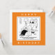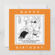 Pub lover birthday card. Wife tells her friend that her lazy sleeping husband only finds his "get up and go" when the pubs open. Funny cartoon by UK cartoonist Nigel Sutherland. Pub goer joke.