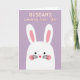 This card features a soft lavender background with a simple white bunny rising from the bottom edge, its long ears tipped with gentle pink inside 🐰. The bunny’s tiny black eyes look upward as if meeting someone’s gaze, and faint pink cheeks give it a shy, affectionate look. A bright red heart sits where the nose would be, with thin black whisker lines fanning out to either side, adding a sweet, close-up feel. Near the top, the word “HUSBAND” is set in large pastel-pink uppercase letters, centered and easy to spot. Just below it, the phrase “somebody Loves You!” appears in a flowing pink cursive style, creating a softer contrast with the line above 🌷. The roomy spacing and gentle pastel palette keep everything calm and intimate, like a quiet moment shared between two people. The bunny’s white shape stands out crisply against the lavender field, with the red heart nose as the brightest accent.