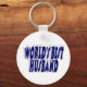Key chain with World's Best Husband in 3D dark blue text. Round and square key chains available in several sizes.