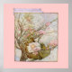 A beautiful pre-1923 vintage image depicting the nursery rhyme "Hush-A-Bye-Baby". The image shows a baby in a cradle that is sitting in a tree with pale pink flowers.