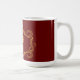 Funny coffee mug for country folks features gold "hush up" text and fancy frame on dark red background. A perfect way to remind others to stop talking while you're drinking!