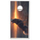 Natural Wood Cornhole Set, Yellow and Purple bags