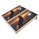 Natural Wood Cornhole Set, Red and Royal Blue bags