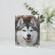 Siberian husky sled dog up close postcard.