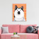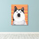Lovely husky dog wall art. Red and yellow stripes and happy husky drawing. Interior decor for all husky lovers.