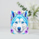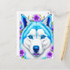 Husky Dog with Blue Eyes and Flowers Postcard
