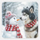Husky Dog With Snowman Square Sticker