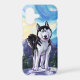 Animal Parade Husky Dog Electronics Gifts and Accessories brought to you by Imagine That! Design feature our original art by Traci Van Wagoner of a cute black and white Siberian Husky standing on a snowy hill in front of a majestic mountain range and a textured blue sky and a playful wavy purple border painted by our talented children's book artist, Traci Van Wagoner. Doggy lovers of all ages will love this playful pup. On many of our whimsical products you'll find this humorous canine coming and going with the playful Husky's head on one side and the funny dog's fluffy tail on the other. Join the Animal Parade and bring a smile to the face of someone you love with a gift of our cute Heads and Tails Husky. Woof!