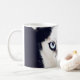 This mug has the eyes of a husky on it.