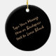 Lightweight, smooth, pure white ornament with nice sheen. Perfect size to be seen from across the room ... and to attract closer inspection! Price was great for ordering enough for the whole family! Clear, bold black design just as requested. Matches the order exactly. Just so nice!