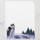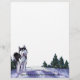 Animal Parade Husky Dog Coordinating Personalized Stationery and Accessories brought to you by Imagine That! Design features our original art of a cute black and white Siberian Husky dog character standing on a snowy hill in front of a majestic mountain range and a textured blue sky with a playful wavy purple border. This fun pet art, painted by our talented children’s illustrator, Traci Van Wagoner, is perfect Husky lovers, dog lovers, and humorous animal art lovers of all ages. On many of our whimsical Husky dog stationery set accessories you'll find this cute dog coming and going with the his head on one side and this tail on the other. Join the Animal Parade and bring a smile to the face of someone you love with a gift of our cute coordinating and personalized Husky dog stationery gift sets. Woof!