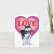Animal Parade Romantic Siberian Husky Dog Personalized Heart and Love gifts, cards, and accessories brought to you by Imagine That! Design features our fun artwork of a black and white Husky holding a pretty rose in its mouth with layered purple, red, and pink hearts behind digitally painted by our talented children's artist, Traci Van Wagoner. This sweet dog in love design is a perfect gift for Valentine's day, his or her birthday, for proposing marriage in a fun and original way, or just to say, I love you. Woof!