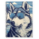 Colorful graphic art design of a husky at a tropical beach with palms. Awesome gift for Husky owner and Husky lover.