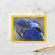 This beautiful photograph of a bright blue parrot is stunning. The Hyacinth Macaw is a cheeky blue parrot and in this photograph he is looking backwards towards the viewer with an interesting expression on it's face. He has bright blue plumage and yellow rings around his eyes and beak. Hyacinth Macaw parrots are talkative birds if kept as pets but their natural habitat is South America.