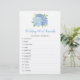 This bridal shower game is a wedding word scramble with 12 words to unscramble. It features a watercolor blue hydrangea floral design. Personalize the text on the back with the bride's name. Matching bridal shower party supplies available.