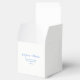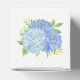 These wedding favor boxes feature watercolor blue hydrangea flowers and foliage as well as bride and groom names, thank you message and wedding date. They are part of a collection which includes a full range of matching wedding stationery and bridal products. Please visit the collection pages in our store to see the full range range of matching products that you can personalize for your wedding.