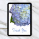 Blue hydrangea flower thank you note card with message. Realistic, light blue hydrangea bloom with some greenery on the front with "thank you" or your choice of greeting. The reverse is blank with optional template to use for printing a message. This card is also available as an instant download. The design is perfect for bridal showers, weddings, and birthdays.