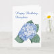 An elegant hydrangea bundle graces the front of this birthday card. Drawn with pastels, the blue hydrangea creates a delicate and eye-catching design to honor your daughter. The words “Happy Birthday, Daughter” are written across the front. The inside holds a tongue-in-cheek sentiment which you can either keep or customize. Make your daughter’s birthday special with this beautiful floral card.