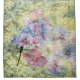 Floral hydrangea in pink and blue, with black dragonfly, and postmark ephemera with a yellow and gray floral art nouveau style base. Girly vibe for bath decor.