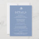 HYDRANGEA Blue Modern Minimalist, wedding details information template enclosure card. Hydrangea floral stem illustration.