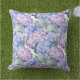 This accent outdoor pillow is shown in a lovely blue multi color hydrangea floral print.
