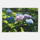 Kitchen towel featuring a photo of hydrangea flowers in a garden in the summer.