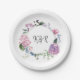 Hydrangea flower wreath wedding themed Party Plate design, a beautiful pink and lilac hydrangea flower also known as hortesia flower wreath. Matching items in the store for a complete wedding stationary set.