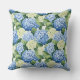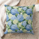 This accent pillow is shown in a lovely blue multi color hydrangea floral print.