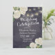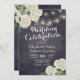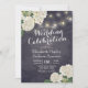 Hydrangea Flowers String Lights Navy Blue Wedding Invitation
