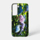 Phone case featuring a garden with blue, purple, and pink hydrangea flowers in bloom in the summer.
