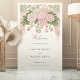 Welcome your guests in style with this beautifully designed wedding welcome sign, featuring a lush arrangement of pastel peonies, hydrangeas, and elegant green foliage. The intricate floral design is framed by ornate, vintage-inspired borders in soft blush tones, creating a romantic and timeless aesthetic. The delicate paper-cut style adds depth and dimension, making the flowers appear almost three-dimensional. Perfect for setting the tone of your wedding ceremony, this sign blends classic elegance with modern artistry, making it an ideal choice for couples who appreciate sophisticated and beautifully detailed wedding decor.