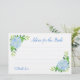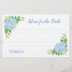 These bridal shower advice cards feature a watercolor blue hydrangea floral design with faux gold foil geometric frame on the back. Matching products also available.