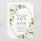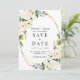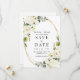 This elegant WEDDING SAVE THE DATE features hand-painted watercolor white florals, hydrangea, gold and beautiful greenery.
