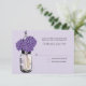 Perfect for a country style wedding or maybe you just love Mason Jars! Mason Jar hanging on a hook filled with hydrangeas. A light purple (Z263) background with dark purple (Z2627) flowers. . If you have any questions on this design or want a color change please email me paula@labellarue.com Also check for the RSVP, RECEPTION and GUEST SEATING Cards to match!