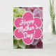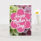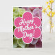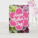 This card features a fuchsia-pink, flower-shaped speech bubble centered in the foreground, outlined with a thin white edge that makes it stand out like a sweet note passed between loved ones ❤️. Inside the bubble, the words “Happy Mother’s Day!” appear in flowing white lettering, evenly centered and easy to read. Behind it, the background looks like softly blurred garden blossoms, with chartreuse-green petals drifting across the left side and gentle pink petals washing over the right. The hazy, light-dappled effect feels like a quiet stroll together, where affection shows in the calm, lingering softness of the scene 🌼. The crisp foreground shape contrasts with the dreamy floral backdrop, giving the greeting a clear focal point without feeling harsh. The text stays contained within the flower bubble, with generous spacing around the letters so the message feels airy and open. The white outline around the pink bubble remains consistent all the way around, floating over the pastel blooms.