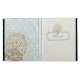 A soft blue hydrangea is featured on this soft white iPad cover. The golden brown text can be personalized to a name or phrase. The back is a blue lattice work pattern behind a brown hydrangea bloom.