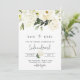 This elegant WEDDING SAVE THE DATE features hand-painted watercolor white florals, hydrangea, gold and beautiful greenery.
