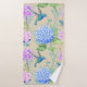 A Beautiful Bath Towel Set For Any Bathroom Decor. Big Blue Hydrangea Flowers With Hummingbirds, Dragonflies and Butterflies.