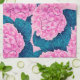 Hydrangea watercolor pattern, pink and blue kitchen towel