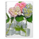 Classic rustic pink, blue, and green Hydrangeas in Mason jars
