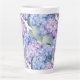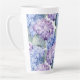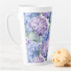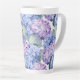 This ceramic latte mug is shown with a lovely multi color hydrangea floral print.