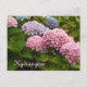 Elegant hydrangea blooms in pinks, mauve and soft blue colors accent this postcard. A beautiful postcard for a friend or for your own collection.