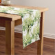 Table runner to accent your table decor is shown in a lovely green-white hydrangea print.