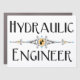 Hydraulic engineer text with a decorative line sporting two drops is a unique design for engineers and engineering college students at birthdays, holidays and graduation.