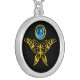 HYPER BUTTERFLY , Blue Sapphire Black Monogram Silver Plated Necklace